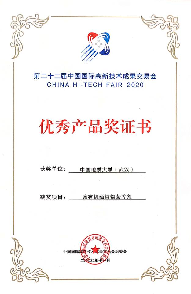地大新聞網(wǎng)訊(通訊員張華)2020年11月11-15日,第二十二屆中國(guó)國(guó)際高新技術(shù)成果交易會(huì)(以下簡(jiǎn)稱“高交會(huì)”)在深圳會(huì)展中心舉行,我校獲得優(yōu).秀組織獎(jiǎng)和優(yōu).秀展示獎(jiǎng)。中地國(guó)際硒研院攜項(xiàng)目《基于新型小分子有機(jī)硒的富硒關(guān)鍵技術(shù)》參展。該項(xiàng)目成果“富有機(jī)硒植物營(yíng)養(yǎng)劑”等三項(xiàng)產(chǎn)品獲優(yōu).秀產(chǎn)品獎(jiǎng)。