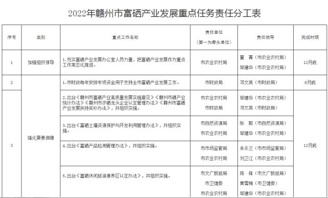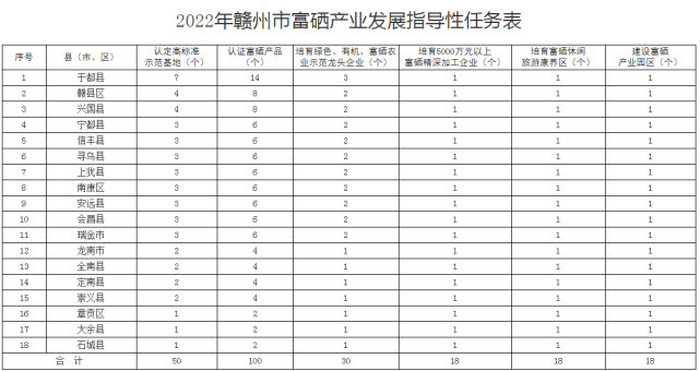 2022年贛州市富硒產(chǎn)業(yè)發(fā)展指導(dǎo)性任務(wù)表