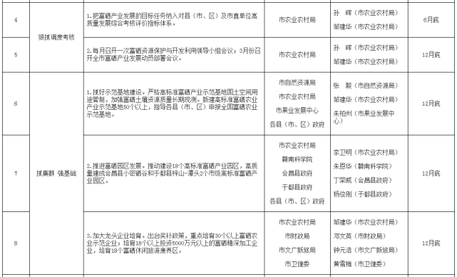 2022年贛州市富硒產(chǎn)業(yè)發(fā)展重點任務(wù)責(zé)任分工表
