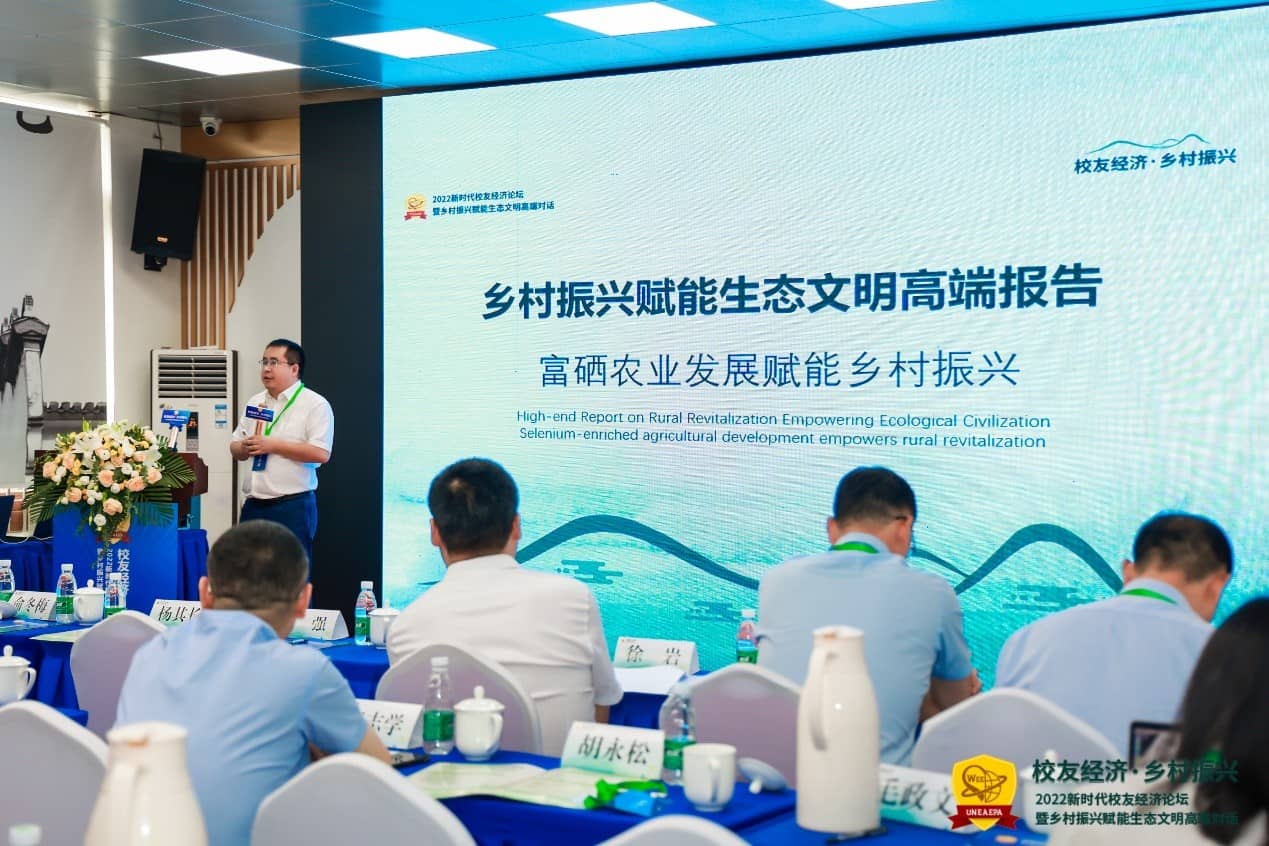 為進(jìn)一步探索高校服務(wù)我國(guó)重大戰(zhàn)略的新路徑,2022年6月18日,“2022新時(shí)代校友經(jīng)濟(jì)論壇暨鄉(xiāng)村振興賦能生態(tài)文明對(duì)話”在成都崇州市召開。中國(guó)地質(zhì)大學(xué)(武漢)校長(zhǎng)王焰新院士致辭,中地國(guó)際硒研院田熙科教授做主旨報(bào)告。