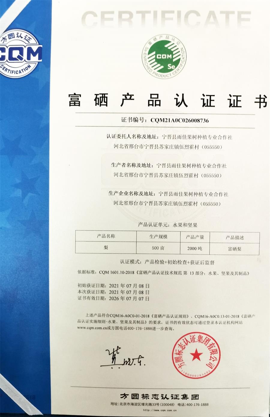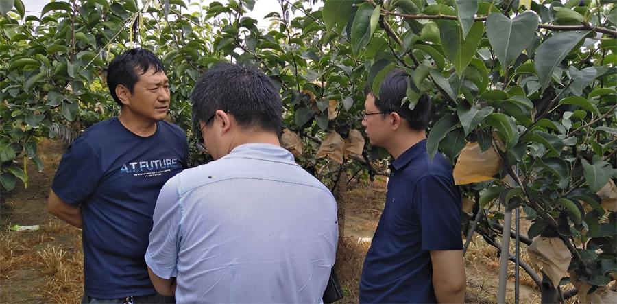 在寧晉縣,雨佳果樹種植專l業(yè)合作社負責人霍總向羅總和于總一行詳細介紹了果園品種分布,分批上市時間。雨佳合作社是該市智慧農業(yè)應用示范點,產品多次獲得京津冀果品爭霸賽金獎。在霍總的帶領下,雨佳合作社在通過歐盟質量認證體系基礎上又與中國地質大學(武漢)國際硒科學與產業(yè)發(fā)展研究院合作,將有機、富硒、酵素三效合一,研發(fā)了富硒梨果產品,已經連續(xù)兩年獲得第三方機構的“富硒產品認證證書”。去年有200余mu富硒梨果被香港某大型超市提前批量訂購。非常巧合的是,今年香港客商也在同一天來到了霍總的富硒梨基地,商定今年的采購計劃。